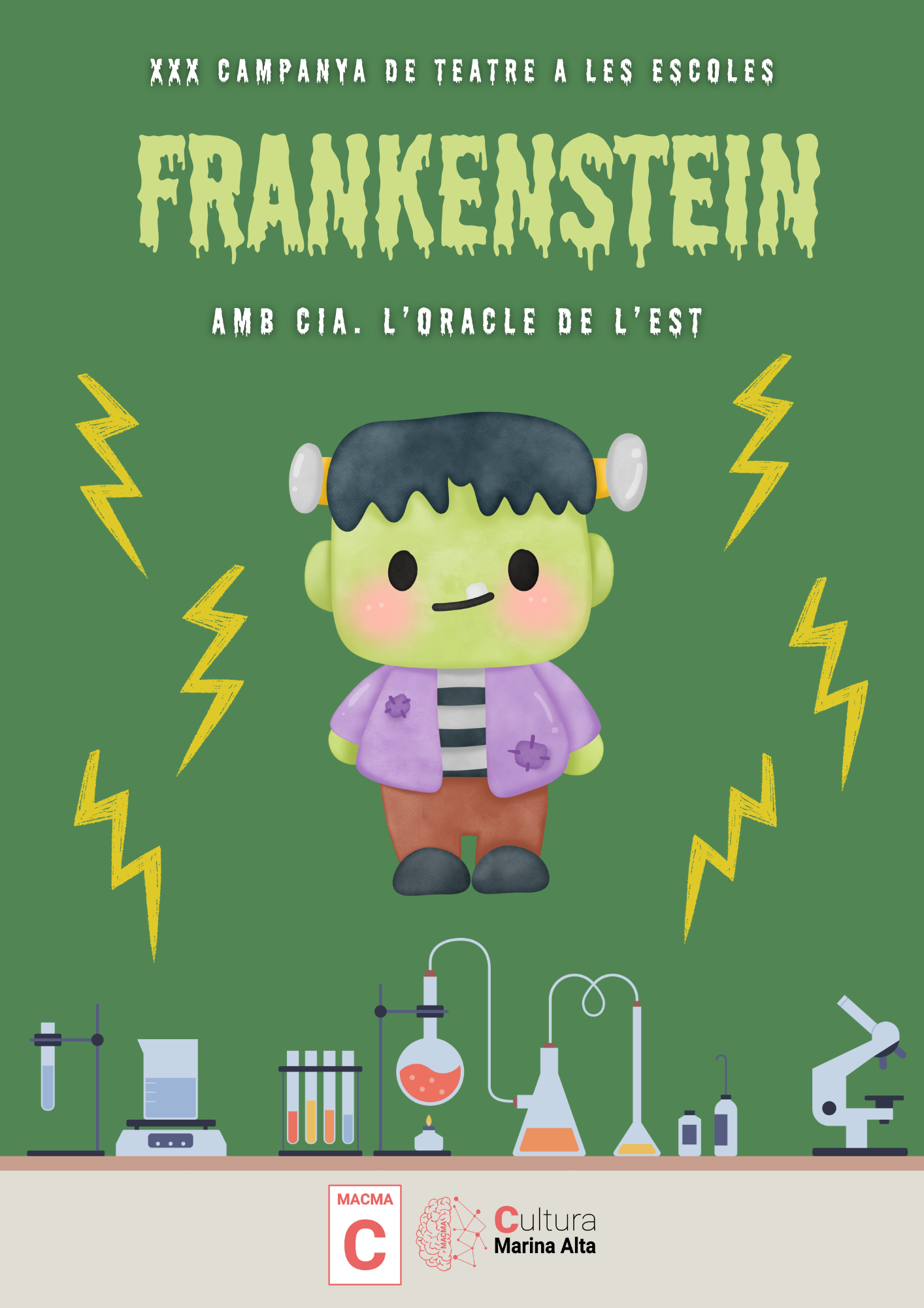 Imatges d'edicions anteriors.En aquesta edició tan especial, l’obra escollida és “Frankenstein, més enllà de l’aparença” a càrrec de la prestigiosa companyia de la comarca l’Oracle de l’Est. La proposta ofereix una adaptació del clàssic que posa el focus en la mirada interior i la superació dels prejudicis, tot mantenint el format de proximitat i interacció que caracteritza la campanya. Les representacions s’adaptaran, com és habitual, als diferents nivells educatius, des d’Infantil fins a 6é de Primària.